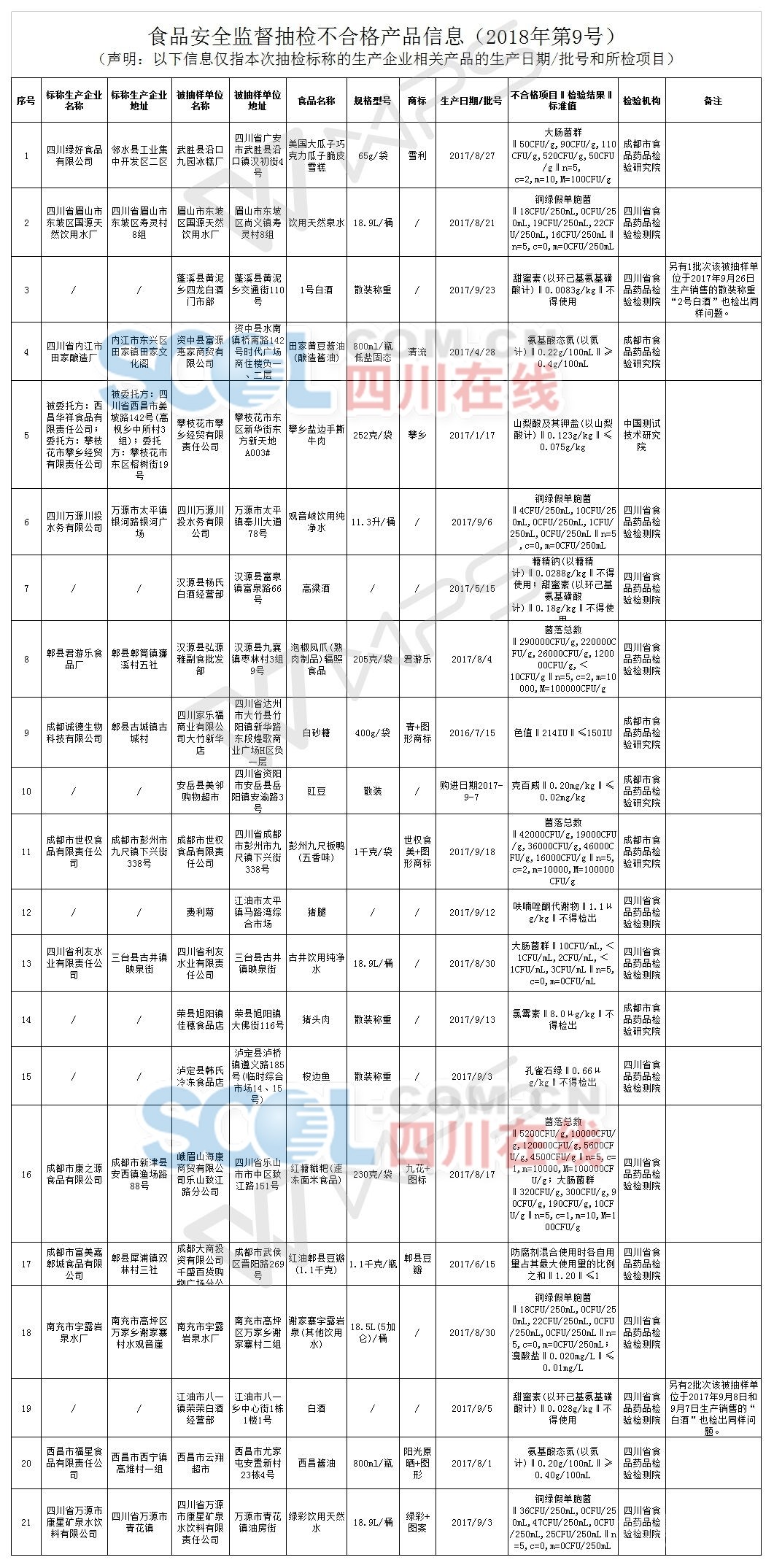 省食品藥品監(jiān)管局相關(guān)負(fù)責(zé)人表示,對(duì)上述監(jiān)督抽檢中發(fā)現(xiàn)的不合格產(chǎn)品,生產(chǎn)經(jīng)營(yíng)者所在地食品藥品監(jiān)管部門(mén)已按相關(guān)規(guī)定開(kāi)展核查處置,責(zé)令違法生產(chǎn)經(jīng)營(yíng)者下架、召回不合格產(chǎn)品,徹查問(wèn)題原因并全面整改,并責(zé)令成都、自貢、攀枝花、綿陽(yáng)、遂寧、內(nèi)江、樂(lè)山、南充、廣安、達(dá)州、雅安、眉山、資陽(yáng)、甘孜、涼山市(州)食品藥品監(jiān)管部門(mén)應(yīng)在2018年5月22日前向省食品藥品監(jiān)督管理局報(bào)告核查處置情況并向社會(huì)公布。