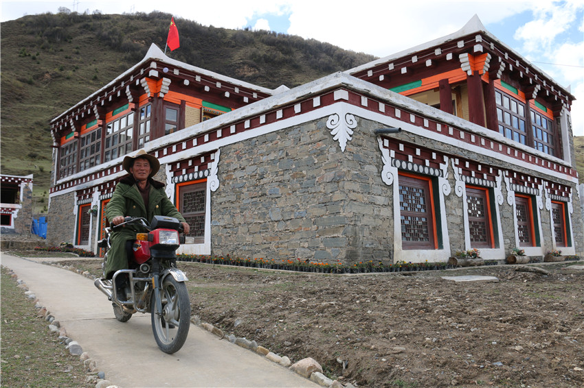 5月4日,陽(yáng)光熱烈,傳遞著脈脈溫暖。道孚縣八美鎮(zhèn)中古村一組墨石林安置點(diǎn),村民澤翁正在自家房屋裝修成的民俗酒店忙得不亦樂乎。他的心里,比燦爛陽(yáng)光還要溫暖。