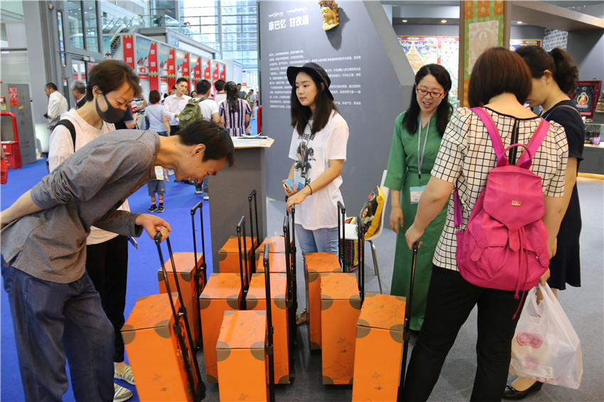 318線精品旅游線路圖、創(chuàng)意拉桿箱;原本一些靜態(tài)的物品被潮流的設計之后,在“藝?甘孜”展館門口屢屢賣到脫銷。此次文博會,甘孜州全境文化產(chǎn)業(yè)發(fā)展公司順應旅游市場推出了一系列“接地氣”的文化創(chuàng)意產(chǎn)品。通過傳統(tǒng)文化和日常生活的無縫銜接,旅游、文物在老百姓心中變得更加生動有趣、接地氣。該公司運營總監(jiān)梅小恩說:“由于多次參加布展,考慮到消費者購物后,攜帶很不方便。于是前期公司就設計制成這款具有康巴文化的文創(chuàng)產(chǎn)品IP形象,雖然是一款紙箱,但款式都以真皮箱相仿,設計理念是康巴漢子騎著摩托車奔馳在318線上,這一理念得到了市民認同,前來購買的人很多,消量特別好。下步將立馬上線,推出皮箱系列,到今天為止訂單都很多了。”