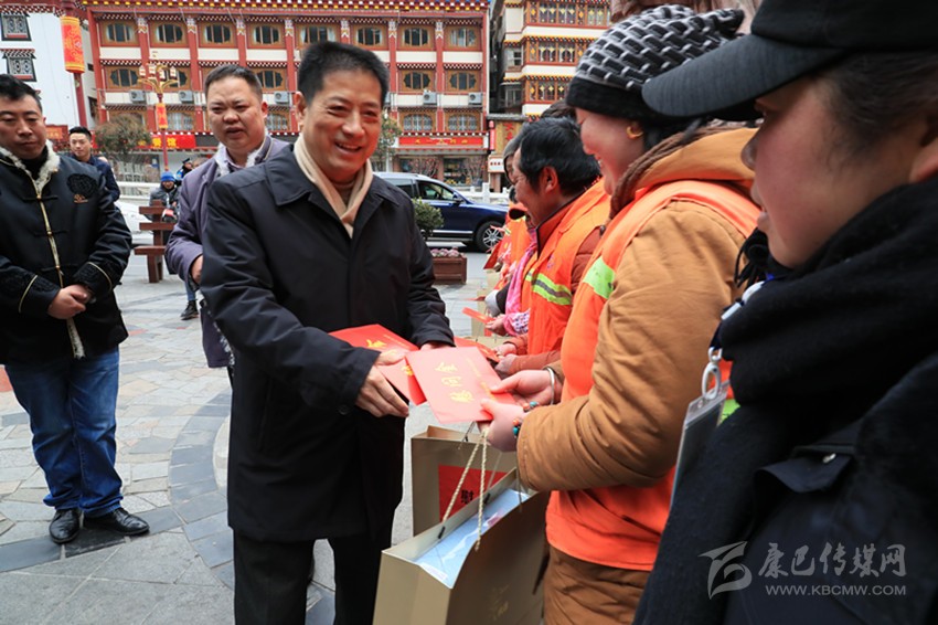本網(wǎng)訊 在春節(jié)和藏歷新年即將到來之際,州委書記劉成鳴專程來到康定市將軍橋環(huán)衛(wèi)點,看望慰問堅守崗位的環(huán)衛(wèi)工人,向辛勤勞動的環(huán)衛(wèi)工人送去新春的祝福,并為環(huán)衛(wèi)工人發(fā)放慰問品和慰問金。