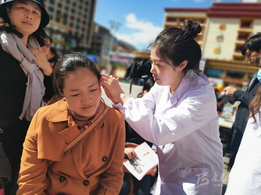 在康定市三合鄉(xiāng)色龍村,當(dāng)?shù)厝罕姮F(xiàn)場向巴特爾一行打快板頌黨恩。