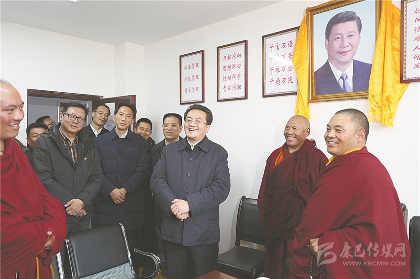 一路翻山越嶺,鄧小剛首先深入駐地營房和基層服務(wù)中心,看望一線武警官兵、公安干警、消防隊(duì)員和基層黨員干部,帶去省委的關(guān)心慰問。他指出,奮戰(zhàn)在雪域高原一線的同志戰(zhàn)嚴(yán)寒、斗風(fēng)雪、抗缺氧,迎難而上、頑強(qiáng)拼搏,為藏區(qū)繁榮發(fā)展長治久安作出了重要貢獻(xiàn),要堅(jiān)持嚴(yán)管和厚愛相結(jié)合,多了解基層一線同志的情況,關(guān)心他們的工作生活,聽取工作建議,幫助解決實(shí)際困難問題,注重在一線培養(yǎng)鍛煉干部,引導(dǎo)廣大黨員干部立足本職崗位爭做奉獻(xiàn)。在藏傳佛教寺廟和僧舍,鄧小剛同僧尼、信眾深入交心談心,了解他們修行和生活情況,勉勵(lì)他們發(fā)揚(yáng)愛國愛教、守法持戒優(yōu)良傳統(tǒng),多做利益眾生、造福社會的善事好事,發(fā)揮宗教促進(jìn)社會和諧的積極作用。在聽取州縣工作匯報(bào)后,他強(qiáng)調(diào),今年是新中國成立70周年,維護(hù)好藏區(qū)和諧穩(wěn)定責(zé)任重大,要樹牢“四個(gè)意識”,堅(jiān)定“四個(gè)自信”,做到“兩個(gè)維護(hù)”,全面貫徹黨的宗教工作基本方針,堅(jiān)持宗教中國化方向和獨(dú)立、自主、自辦原則,深入推進(jìn)藏傳佛教寺廟依法規(guī)范管理,營造安全、規(guī)范、潔凈、有序的修行環(huán)境,積極引導(dǎo)宗教與社會主義社會相適應(yīng),深入扎實(shí)做好各項(xiàng)工作,促進(jìn)藏區(qū)繁榮發(fā)展長治久安。