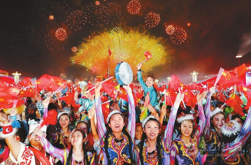 10月1日晚,慶祝中華人民共和國(guó)成立70周年聯(lián)歡活動(dòng)在天安門(mén)廣場(chǎng)舉行。圖為聯(lián)歡活動(dòng)現(xiàn)場(chǎng)。 圖片均由新華社發(fā)