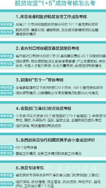 如何考?省扶貧開(kāi)發(fā)局相關(guān)負(fù)責(zé)人介紹,具體而言,就是將黨委和政府脫貧攻堅(jiān)工作成效考核、省直部門(mén)(單位)定點(diǎn)扶貧考核、扶貧專(zhuān)項(xiàng)考核、省內(nèi)對(duì)口幫扶藏區(qū)彝區(qū)貧困縣考核、貧困村“五個(gè)一”幫扶考核、東西部扶貧協(xié)作和藏區(qū)攜手奔小康成效評(píng)價(jià)統(tǒng)一整合為脫貧攻堅(jiān)成效考核,一支隊(duì)伍完成所有考核。