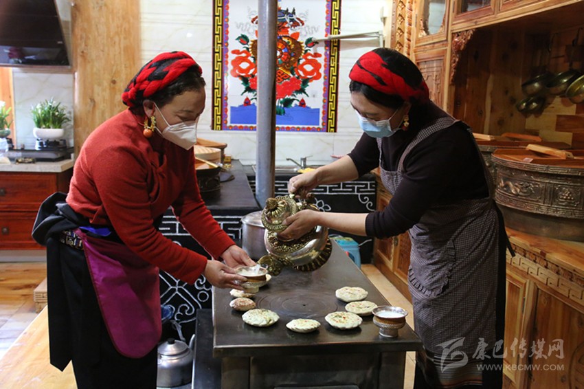 揉面、和餡、壓花、貼葉、烘制、點(diǎn)紅......早上10點(diǎn),道孚縣鮮水鎮(zhèn)團(tuán)結(jié)二村的亞瑪青初和妹妹仲呷,戴著口罩,