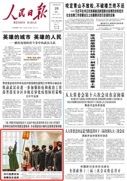 2月25日,《人民日?qǐng)?bào)》刊登題為《開(kāi)行免費(fèi)專(zhuān)列 保障安全返崗》的報(bào)道,聚焦川籍務(wù)工人員的免費(fèi)返崗專(zhuān)列。