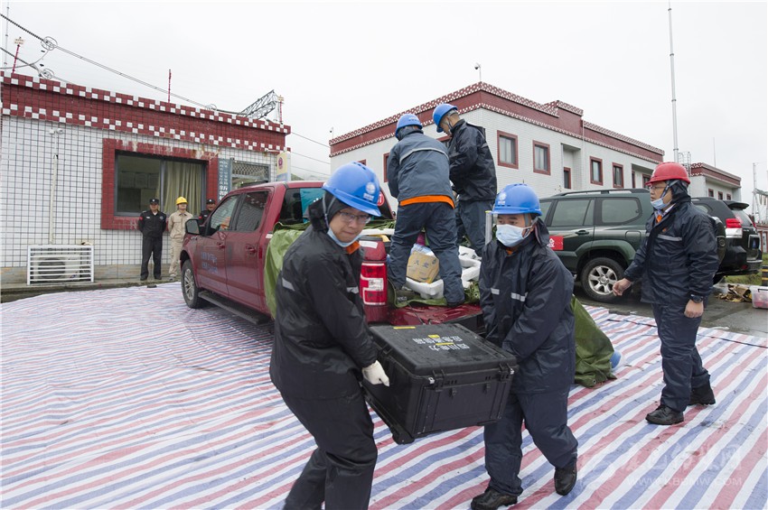 獲知“災(zāi)情”的第一時(shí)間, 國(guó)網(wǎng)四川省電力公司馬上發(fā)布集結(jié)準(zhǔn)備信息,聯(lián)系國(guó)網(wǎng)陜西省電力公司、重慶市電力公司進(jìn)行應(yīng)急聯(lián)動(dòng)支援。國(guó)網(wǎng)甘孜供電公司立即啟動(dòng)應(yīng)急預(yù)案迅速響應(yīng),對(duì)災(zāi)害進(jìn)行先期處置。來(lái)自陜西、重慶和四川應(yīng)急中心、信通公司、自貢公司、遂寧公司、眉山公司、電力醫(yī)院等6家基層單位的11支應(yīng)急隊(duì)伍全副武裝,攜帶工器具和應(yīng)急救援物資,在蒲江集結(jié)后,頂風(fēng)冒雨,遠(yuǎn)距離奔襲7小時(shí)抵達(dá)“災(zāi)區(qū)”。