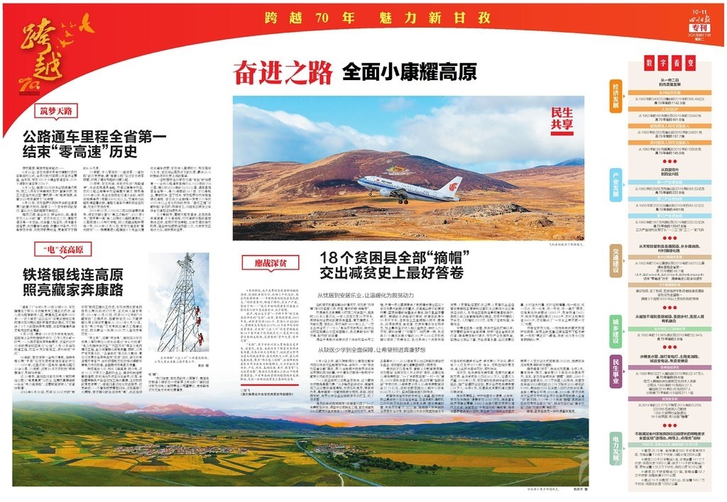 為慶祝甘孜建州70周年,《四川日報(bào)》于9月15日推出八連版特別報(bào)道,整體以紅色打底,充滿喜慶的祝福。