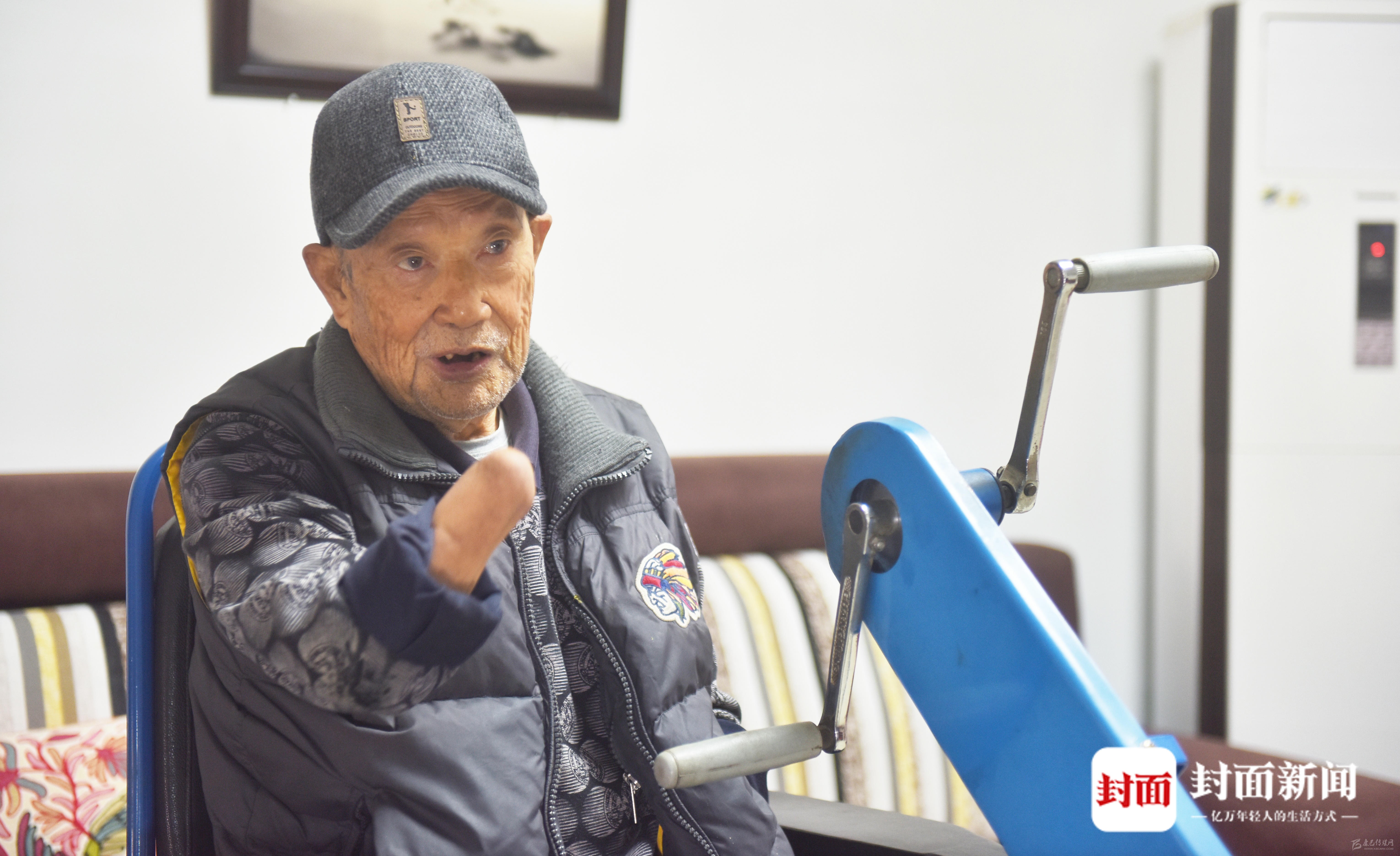 10月14日,成都氣溫驟降,86歲的周全弟在毛衣外面套了件棉馬甲。
