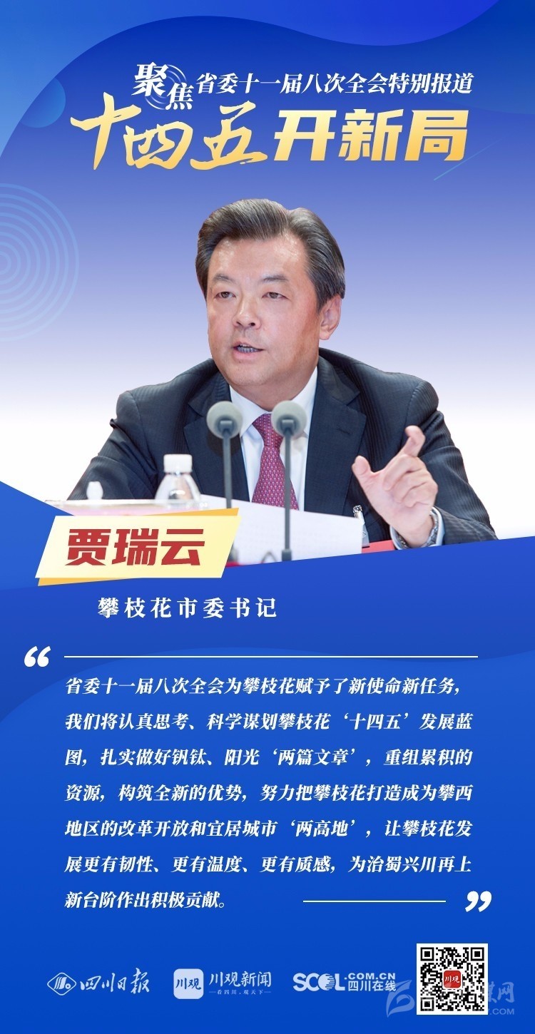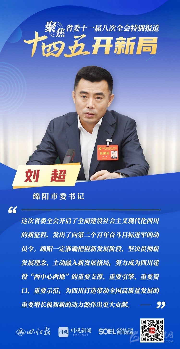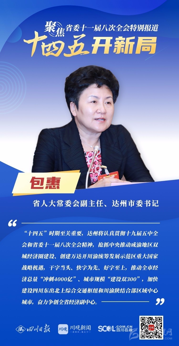 12月3日,中共四川省委十一屆八次全會(huì)在成都開幕,全會(huì)將深入學(xué)習(xí)貫徹黨的十九屆五中全會(huì)精神,審議《中共四川省委關(guān)于制定四川省國(guó)民經(jīng)濟(jì)和社會(huì)發(fā)展第十四個(gè)五年規(guī)劃和二〇三五年遠(yuǎn)景目標(biāo)的建議(討論稿)》,為未來(lái)5年乃至更長(zhǎng)時(shí)期四川發(fā)展謀劃新藍(lán)圖 。
