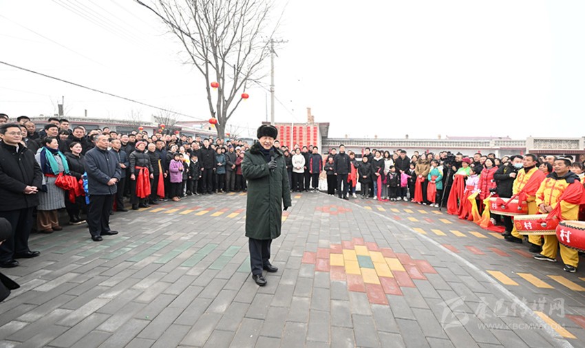 村文化廣場上十分熱鬧,村民們打起威風鑼鼓、扭起秧歌歡慶佳節(jié)。看到總書記來了,人們高興地歡呼起來。習(xí)近平對鄉(xiāng)親們說,我們黨的根本宗旨就是為人民群眾辦好事,為人民群眾幸福生活拼搏、奉獻、服務(wù)。我們?nèi)缙诖蜈A了脫貧攻堅戰(zhàn),如期實現(xiàn)了全面建成小康社會目標,現(xiàn)在踏上了全面建設(shè)社會主義現(xiàn)代化國家新征程。建設(shè)現(xiàn)代化國家離不開農(nóng)業(yè)農(nóng)村現(xiàn)代化,要繼續(xù)鞏固脫貧攻堅成果,扎實推進鄉(xiāng)村振興,讓群眾生活更上一層樓,在推進農(nóng)業(yè)農(nóng)村現(xiàn)代化中越走越有奔頭。
