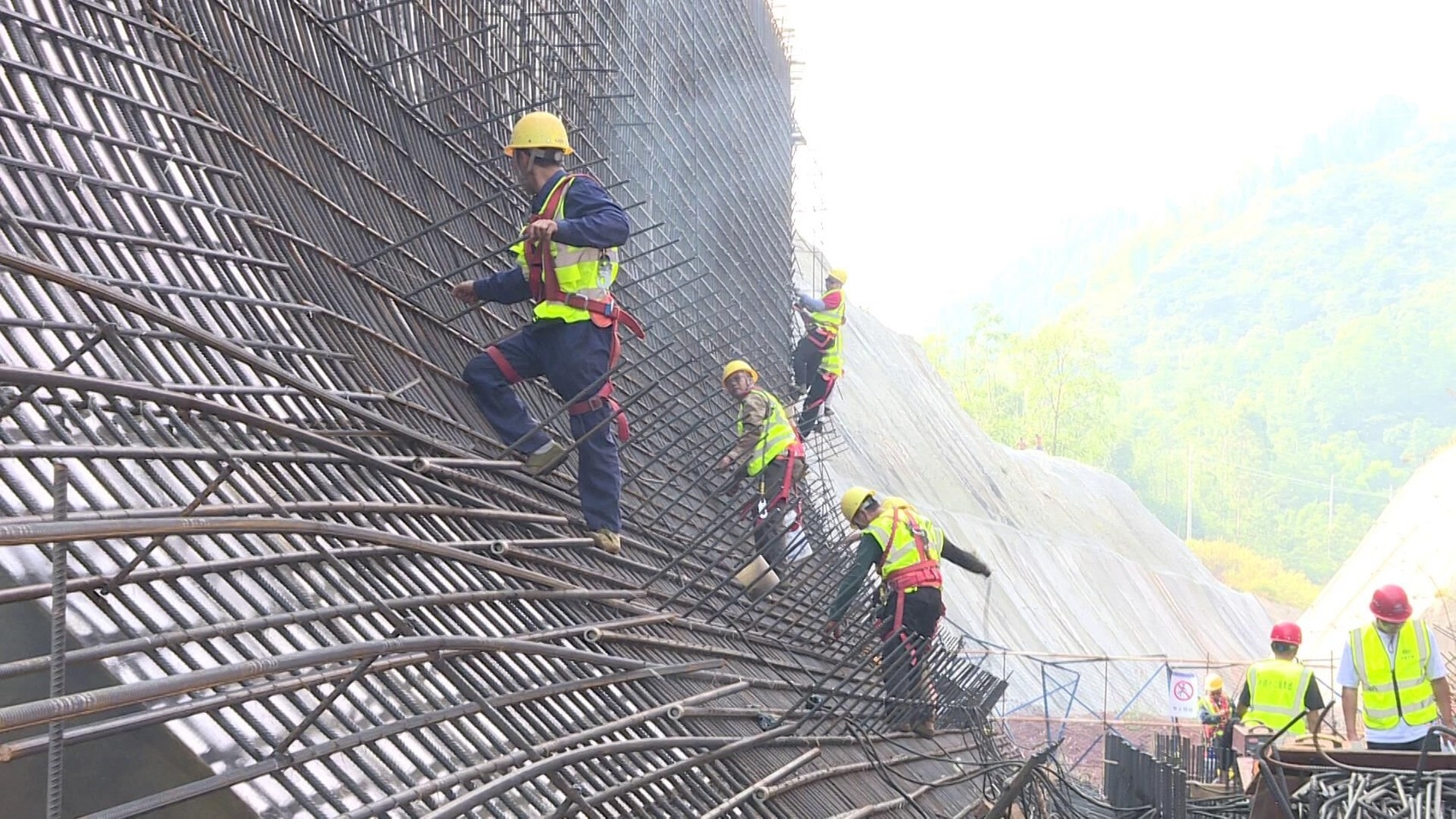 國(guó)慶節(jié)假期,在向家壩灌區(qū)北總干渠一期一步工程大地灣渡槽項(xiàng)目施工點(diǎn),工人正加緊對(duì)第一跨渡槽槽身開展鋼筋綁扎工作。