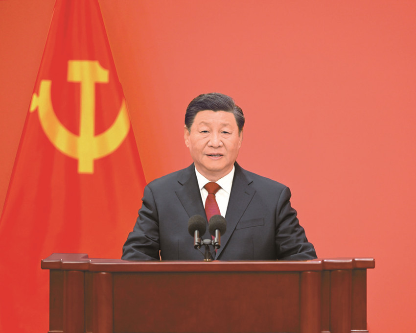 10月23日,剛剛在中國共產(chǎn)黨第二十屆中央委員會第一次全體會議上當選的中共中央總書記習(xí)近平和中共中央政治局常委李強、趙樂際、王滬寧、蔡奇、丁薛祥、李希在北京人民大會堂同采訪中共二十大的中外記者親切見面。這是習(xí)近平發(fā)表重要講話。 新華社記者 李學(xué)仁 攝