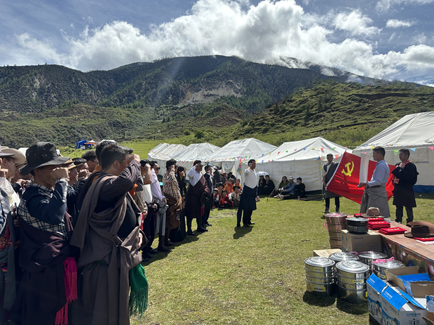 圖為沈陽(yáng)在康定市塔公草原了解旅游服務(wù)管理等情況。