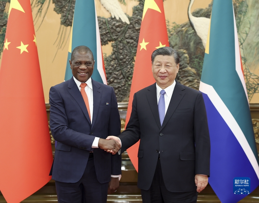 習(xí)近平指出,今年是中南建交25周年,兩國(guó)關(guān)系步入“黃金時(shí)代”。今年8月,我對(duì)南非進(jìn)行了第四次國(guó)事訪問(wèn),同拉馬福薩總統(tǒng)一致決定,中南兩國(guó)要做高度互信的戰(zhàn)略伙伴、共同進(jìn)步的發(fā)展伙伴、相知相親的友好伙伴、維護(hù)正義的全球伙伴。中方愿同南非一道,不斷充實(shí)中南全面戰(zhàn)略伙伴關(guān)系內(nèi)涵,推動(dòng)兩國(guó)關(guān)系再上新臺(tái)階。