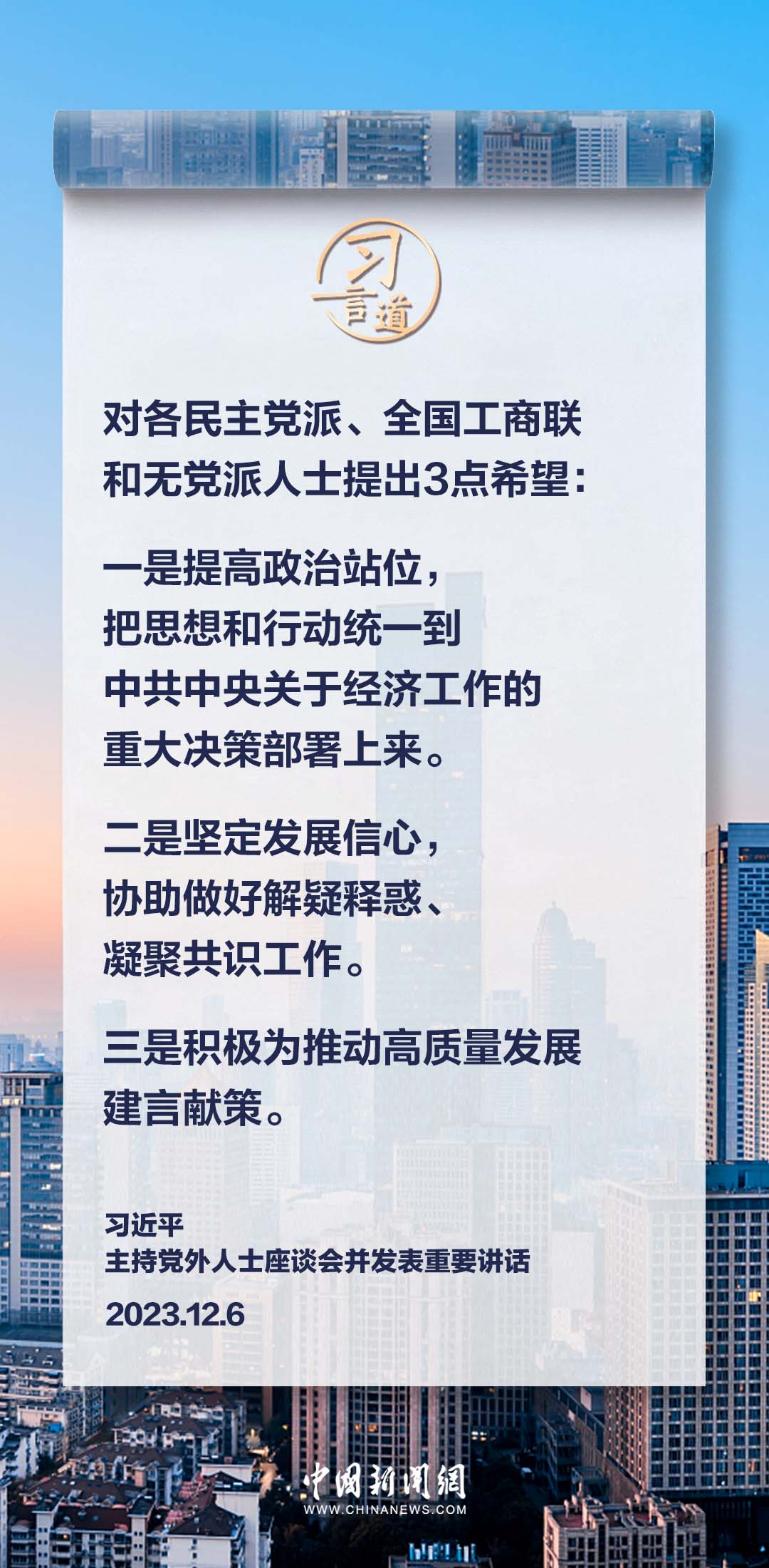 12月6日,中共中央在中南海召開黨外人士座談會,就今年經濟形勢和明年經濟工作聽取各民主黨派中央、全國工商聯負責人和無黨派人士代表的意見和建議。中共中央總書記習近平主持座談會并發(fā)表重要講話。