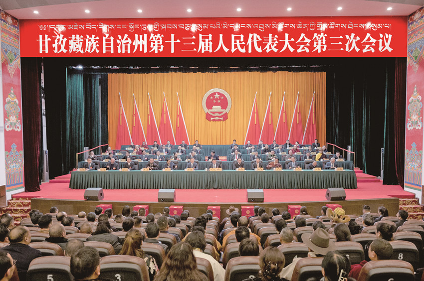 1月31日下午,甘孜藏族自治州第十三屆人民代表大會第三次會議在康定閉幕。 賴強 攝