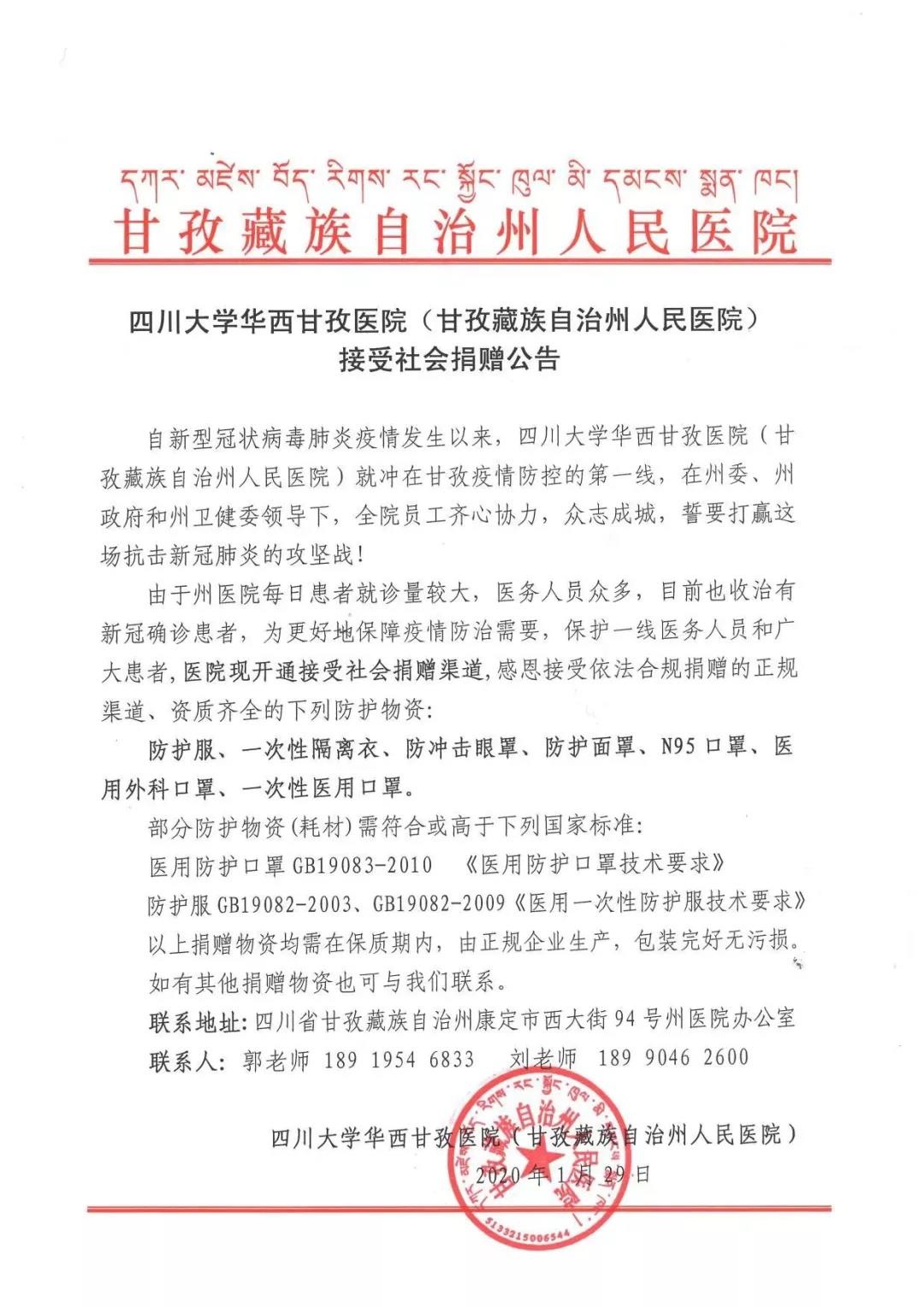 自新型冠狀病毒肺炎疫情發(fā)生以來,四川大學(xué)華西甘孜醫(yī)院(甘孜州藏族自治州人民醫(yī)院)就沖在甘孜疫情防控的第一線,在州委、州政府和州衛(wèi)健委領(lǐng)導(dǎo)下,全院員工齊心協(xié)力,眾志成城,誓要打贏這場抗擊新冠肺炎的攻堅戰(zhàn)!