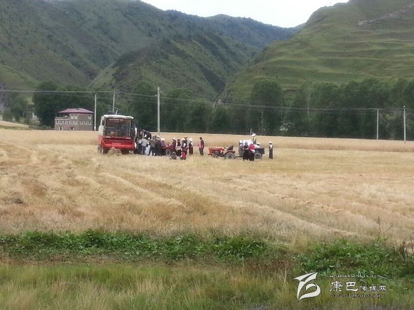 本網(wǎng)訊(孫學(xué)花 文/圖)近日,當(dāng)筆者來(lái)到康定縣新都橋時(shí),一片片金黃的麥田展現(xiàn)在眼前,收割機(jī)不停的工作場(chǎng)面,拖拉機(jī)忙碌的來(lái)回在天地合牧民家中,豐收的喜悅嵌在牧民的臉上。“現(xiàn)在正是收割的季節(jié),我們根本不用人工,全是機(jī)器設(shè)備,割糧食用的是收割機(jī)是政府給了補(bǔ)貼的,運(yùn)輸不用人工,都是用拖拉機(jī)拉,我們只需要上個(gè)車就完了,麥子曬干了直接用脫粒機(jī),磨面直接用電磨,可以說(shuō)完全是農(nóng)機(jī)一體化運(yùn)作,我們老百姓是越來(lái)越輕松了,糧食產(chǎn)量比以前大幅度提高,因?yàn)槲覀儸F(xiàn)在用科學(xué)種田,用復(fù)合肥、地膜等科學(xué)技術(shù),日子越來(lái)越幸福。”瓦澤鄉(xiāng)瓦澤村村民降初高興地分享著他家豐收的喜悅。