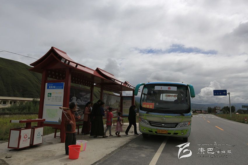 甘孜縣公交車(chē)開(kāi)進(jìn)鄉(xiāng)村。