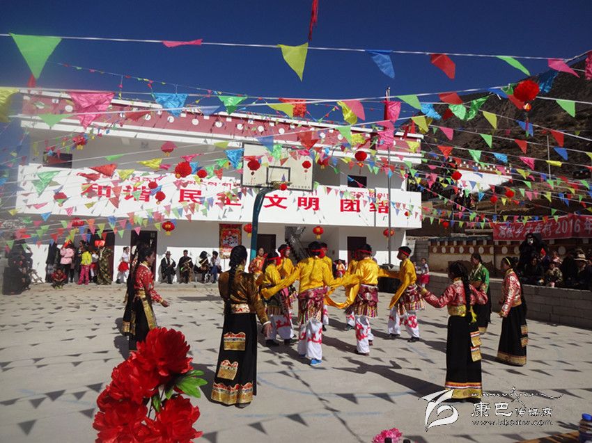 正月初八上午十點(diǎn),鄉(xiāng)城縣移民搬遷新村——太年村群眾自編自演的新年文藝節(jié)目在彩旗飄飛的村活動(dòng)室舉行,《舞動(dòng)高原》、《情滿大山》、《唱支山歌給黨聽》、《小蘋果》等近兩個(gè)小時(shí)的歌舞節(jié)目依次亮相,一位位“草根”明星輪番登臺(tái),一個(gè)個(gè)歌頌家鄉(xiāng)新風(fēng)貌、展現(xiàn)搬遷新村新風(fēng)采的節(jié)目贏得他觀眾如潮的掌聲。村民們自編的感恩黨、贊美新生活的山歌唱了一曲又一曲,精彩的節(jié)目吸引了附近鄉(xiāng)村數(shù)百人前來(lái)觀看。