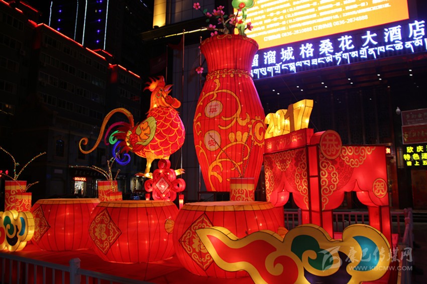 據(jù)該公司負責本次花燈設計的設計師鄭才學介紹,本次花燈每組主題不同,以全新的設計理念、歡樂祥和的氛圍、獨具特色的造型,向世人展現(xiàn)獨特的甘孜魅力。向陽橋頭的花燈主題為新春快樂,整個花燈呈火紅色,巨型“春”字搭配藏族繪畫中最常見但寓意深刻的吉祥八寶圖案,以及舞獅子、大紅燈籠、中國結等融為一體,為來到康定的客人第一時間送上熱情的新春問候;情歌廣場的花燈主題為鼓舞康定,以被譽為中國民間藝術瑰寶的大紅鼓作為人民歡慶盛世、贊美和諧的情感載體,充滿雄渾之氣,寓意著我州在時代發(fā)展的浪潮中擊鼓奮進、得勝而鳴;情歌大廈門口的花燈主題為金雞送平安,以中國傳統(tǒng)生肖年文化為背景,配合中國結和爆竹,喜慶而不失莊重,寓意著為全州人民送去平安吉祥;將軍橋頭的花燈主題為童子賀歲,火紅的燈籠搭配喜慶的福娃及爆竹,為全州各族人民送上新年的祝福;17隊三岔路口的花燈主題為和諧康定,巨大的荷花藝術造型結合動感的LED光源,造型高低錯落,寓意和諧、和美,體現(xiàn)在州委、州政府的堅強領導下,人民安居樂業(yè),和諧美滿。最霸氣、最吸引人的當屬情歌公園主題為吉祥多福的花燈,整個花燈由六個直徑一米半左右的福字燈籠,環(huán)繞一個直徑達3米左右的福字燈籠組合而成,主燈籠的燈柱高大而厚重,環(huán)繞的六個燈柱上配有吉祥八寶圖案,寓意著全州物產(chǎn)豐富,人民的生活紅紅火火,一年更比一年好。
