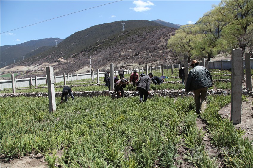 4月15日是星期六,但巴塘縣松多鄉(xiāng)的干部們卻沒有閑著。在該鄉(xiāng)的下莫西村,40多位村民正聚集在剛剛完成幼苗栽植的苗圃內(nèi),仔細(xì)聆聽著鄉(xiāng)黨委書記扎西澤仁的講解?!耙⒁鉂菜?,保持土壤濕度,盡快為苗圃安裝遮陽網(wǎng),管理人員要加強(qiáng)管理,不得脫崗離崗……。”扎西澤仁講得仔細(xì),村民們聽得認(rèn)真。正在苗圃內(nèi)忙碌的下莫西村黨支部書記安珠澤仁告訴記者,今年來,當(dāng)?shù)剜l(xiāng)干部把辦公室搬到了田邊地角,現(xiàn)場為村民們解決遇到的困難和問題,受到了廣大村民的歡迎。