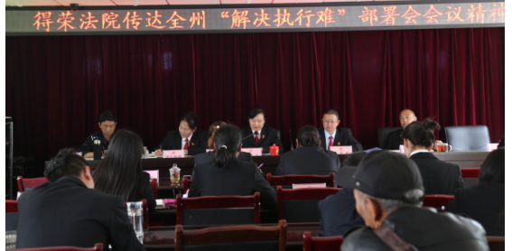 本網(wǎng)訊(張?。?/span>2018年4月13日,得榮縣人民法院全體干警集中學(xué)習(xí)貫徹于本月11日在甘孜州中級人民法院召開的全州法院決勝“用兩年時間基本解決執(zhí)行難”部署會精神。會議由院黨組書記、院長孫菊花同志主持。