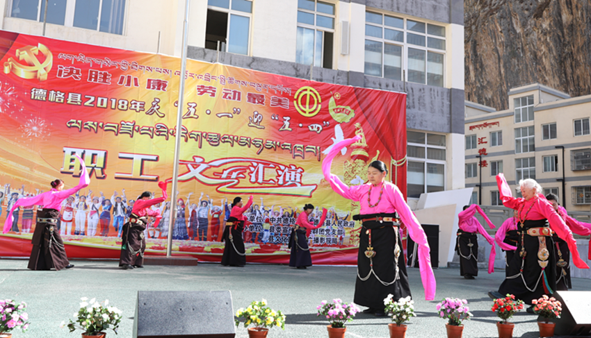 日前,由德格縣委、縣政府主辦,縣委宣傳部、縣群團黨支部、縣文旅廣新局承辦的2018年慶“五一”迎“五四”職工文藝匯演活動在該縣中學舉行,來自全縣各行業(yè)勞模代表、青年代表、各級各部門干部職工、縣中學學生和教職員工2000余人觀看了演出。