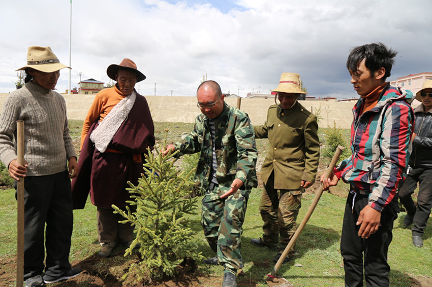 合作社負責人巴熱招呼村民加油干,一定要保質(zhì)保量完成植樹任務(wù),要對得起縣上對牧民的關(guān)愛,把家鄉(xiāng)綠化好。巴熱高興地說,縣上爭取到的這個項目來之不易,而且讓村民來完成,讓大家都有錢掙。過去,項目采取招投標確定施工單位,外來的企業(yè)不愿意用當?shù)孛窆ぃ迕駫瓴坏藉X?,F(xiàn)在項目由村民完成,務(wù)工收益全部歸村民。因此,村民都格外珍惜這個機會。盡管現(xiàn)在是蟲草采挖的黃金季節(jié),但由于村上沒有蟲草采集區(qū)域,除去繳納資源管理費以外,根本談不上收入,村民都放棄了到別的村采集蟲草的打算,一心一意投入到造林工程上。