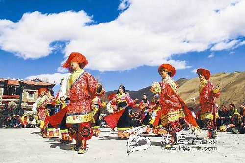 康定縣呷巴鄉(xiāng)上呷村的村民跳起歡樂的舞蹈,喜迎藏歷新年。