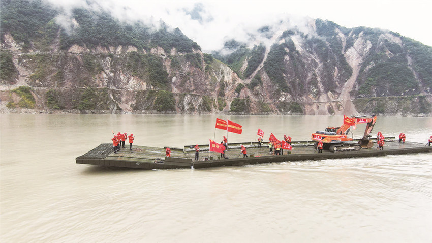 在消防員和其他救援隊伍完成救援工作的時候,另一支身著迷彩服、衣服上印有“四川民兵”字樣的隊伍,扛著鐵鍬等工具從被阻斷的公路上出現(xiàn),他們帶來另一個好消息:磨崗嶺村通向磨西鎮(zhèn),因地震被阻斷的唯一一條公路已經(jīng)打通。目前,行人可以通行,但暫時不能通車。