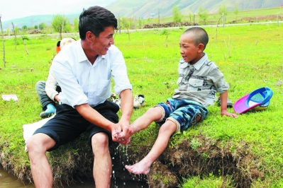 近日,筆者在仁果下鄉(xiāng)采訪時,看到一個年輕人正在給孩子洗腳。“這個孩子是你的親戚嗎?”“不是哦,他們都是我的學(xué)生,因?yàn)楹⒆犹×耍蛶退麄兿茨_,希望孩子從小養(yǎng)成講衛(wèi)生的好習(xí)慣。”看著筆者不解的目光,他解釋說。