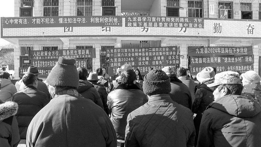 本網(wǎng)訊 1月12日至14日,九龍縣委宣傳部組織縣司法局、縣農(nóng)牧農(nóng)村和科技局、縣衛(wèi)生健康局等部門,聯(lián)合開(kāi)展了學(xué)習(xí)宣傳貫徹習(xí)近平新時(shí)代中國(guó)特色社會(huì)主義思想、省委十二屆四次全會(huì)精神、州委十二屆六次全會(huì)精神宣講暨“七下鄉(xiāng)”暖冬行動(dòng)。