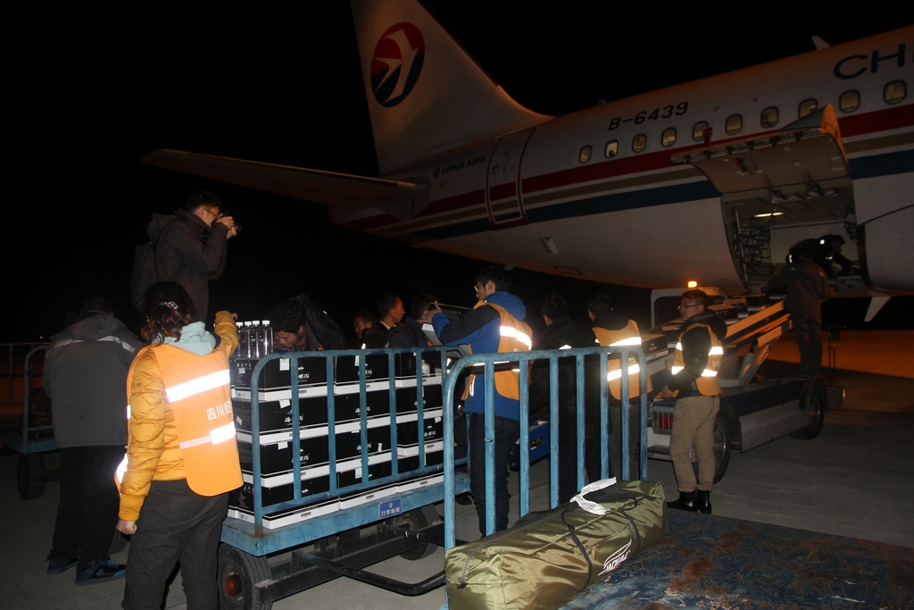 為了盡快給災(zāi)區(qū)人民送去切實(shí)需要的救援物資,解決他們的臨時(shí)住所和安全飲水等問題,同時(shí)也是安撫災(zāi)區(qū)人民的情緒。四川康定機(jī)場集團(tuán)公司董事長譚亨帶領(lǐng)機(jī)場救援工作組在23日6點(diǎn)28分航班抵達(dá)后,以最快速度裝載好所有物資,全速趕往震中塔公鄉(xiāng)。