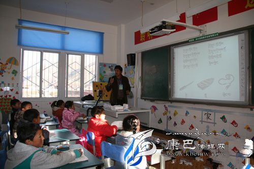 四川省甘孜州爐霍縣仁達(dá)鄉(xiāng)中心校教師正在利用多媒體教學(xué)。  李益眾 攝
