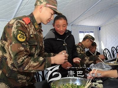 12月7日,康定6.3級地震后的第二個周末,這對甘孜州西康福利學(xué)校的孩子們來說,是一個開心的日子。當(dāng)天上午,武警甘孜州支隊抗震救災(zāi)一線官兵來到學(xué)校,與在這里生活學(xué)習(xí)的孤兒和特困生一起包餃子,度過了一個溫暖的周末。12歲的措姆性格靦腆,她把餃子皮攤在手心,一旁的戰(zhàn)士王兵舀了一勺餡放在餃子皮中央,可措姆怎么也沒法把餃子包得像模像樣。在王兵的輔導(dǎo)下,措姆很快學(xué)會包了一個漂亮的餃子。在學(xué)包餃子過程中,五六十雙手就包出五六十種餃子,看著自己的勞動成果,孩子們特別開心。吃過午飯,武警官兵們還精心安排了疊被子活動,在帳篷內(nèi)教孩子們怎么疊軍被。大家一起動手,你教我疊,熱鬧極了。(宋科霖 /文 郝勇 /攝)