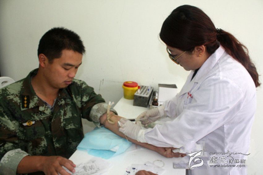 本網(wǎng)訊(許春林文/圖)7月6日中午,武警甘孜支隊鄉(xiāng)城中隊接到縣醫(yī)院求救電話,一名胃部大出血的病人急需O型血進行手術(shù),而醫(yī)院血庫這種血型告急。官兵們了解情況后開始踴躍報名。隨后,9名符合條件的戰(zhàn)士迅速趕往醫(yī)院獻血。