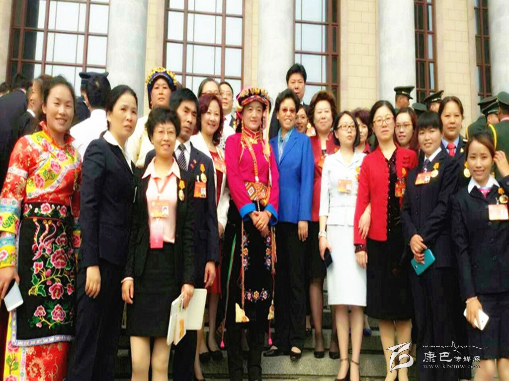 桂花與部分全國勞模在人民大會堂前合影。