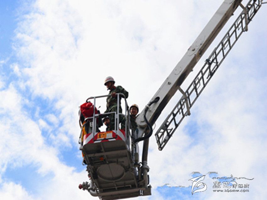 體驗登高。DG-32C登高平臺消防車性能測試和維護保養(yǎng)工作完成后,在甘孜消防支隊司令部參謀長劉乾德和一名登高車駕駛員帶領下筆者親身體驗了一次登高作業(yè)。按照操作規(guī)程,戴好防護頭盔,扎上綁有安全繩的防護腰帶,登高平臺臂正式啟動。駕駛員操作技術十分嫻熟,40秒后,登高平臺穩(wěn)穩(wěn)的停在了28米的高空。站在平臺上俯瞰著下方,一陣清風刮過,平臺出現(xiàn)了輕微搖晃,當時筆者十分緊張,手掌緊緊抓住了平臺上的防護欄。“高空作業(yè)出現(xiàn)這種情況屬于正?,F(xiàn)象,心里一定要平靜,要相信消防員的專業(yè)技術,也要相信消防裝備的安全系數(shù)”駕駛員對筆者說道。隨即,在駕駛員的操作下,平臺緩緩下降至地面,筆者頓時松了口氣,并向操作登高平臺臂的駕駛員表示剛才感覺十分驚險。當?shù)弥{駛員對DG-32C登高平臺消防車經(jīng)過專業(yè)的技術培訓,并具有3年多的駕駛及操作經(jīng)驗時,筆者頓時心生敬畏。
