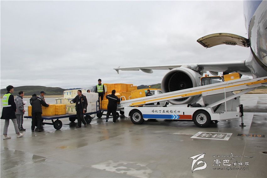 成箱的松茸被運(yùn)上稻城亞丁機(jī)場當(dāng)天的航班。 康定機(jī)場集團(tuán)公司供圖