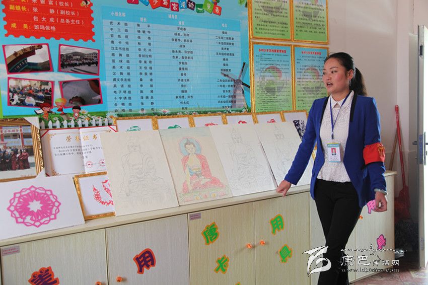 在少年宮孩子們參加格薩爾說唱表演的照片和一件件作品前,負(fù)責(zé)少年宮教學(xué)的張靜老師告訴記者,本著弘揚(yáng)傳承傳統(tǒng)文化的宗旨,少年宮目前設(shè)有14個(gè)興趣小組,包括唐卡、說唱、舞蹈、剪紙、藏文書法、手工、電子琴等,有30多名輔導(dǎo)老師利用業(yè)余時(shí)間和自己的特長從事教學(xué)工作,另外,在色達(dá)縣委宣傳部的支持下,縣文化館還專門選派了兩名輔導(dǎo)員擔(dān)任說唱組的教學(xué)工作。