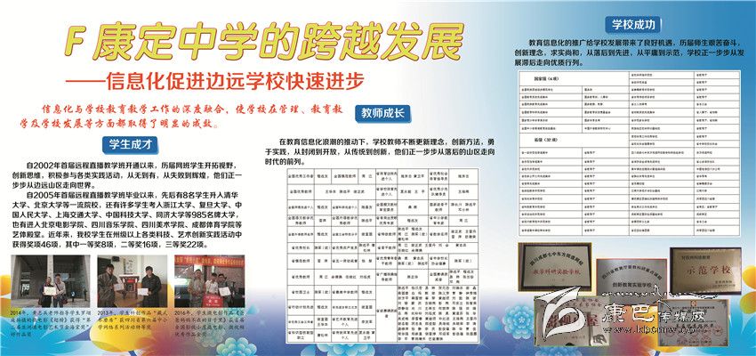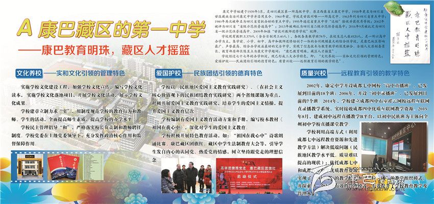 輝煌業(yè)績(jī)俱往矣,而今邁步從頭越??刀ㄖ袑W(xué)成功創(chuàng)建四川省一級(jí)示范性普通高中,康定中學(xué)歷史翻入新的一頁(yè)。學(xué)校將圍繞“建盛德實(shí)學(xué)康中校,做豪邁和美康中人”的“康中夢(mèng)”,把康中打造成全州基礎(chǔ)教育窗口、全省中學(xué)教育名校、全國(guó)藏區(qū)教育典范。