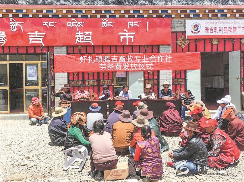 蝦扎鎮(zhèn)吉畜牧專業(yè)合作社勞務(wù)費(fèi)發(fā)放儀式現(xiàn)場(chǎng)。