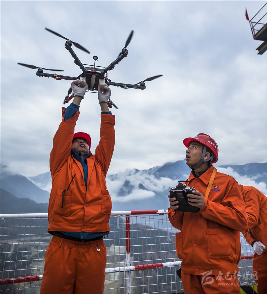 上午10時許,一架無人機從特大橋康定端的索塔頂起飛,3分鐘后,準確落在雅安端的索塔頂上,隨機攜帶的先導索將兩座索塔相連。這根先導索直徑僅2毫米,蕩在數(shù)百米的高空肉眼難辨。