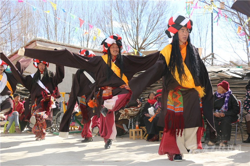 演出現(xiàn)場(chǎng),80歲的澤則瑪高興地說(shuō):“我們一直都是從電視上觀看全國(guó)各地舉辦的新春文藝表演,沒(méi)想到今年春節(jié)我們小小的一個(gè)村子也有了自己的舞臺(tái)?!贝竽瓿跻?,村民們?cè)缭绯赃^(guò)飯,穿上表演服在村級(jí)文化活動(dòng)室等待10點(diǎn)鐘正式演出,活動(dòng)室外的觀眾們正翹首以盼。伴隨著歡快的歌舞聲響起演員們翩翩起舞,為村子增添了節(jié)日的歡樂(lè)。