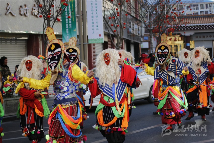 春節(jié)期間康定街頭巡游的藏戲演出隊(duì)。