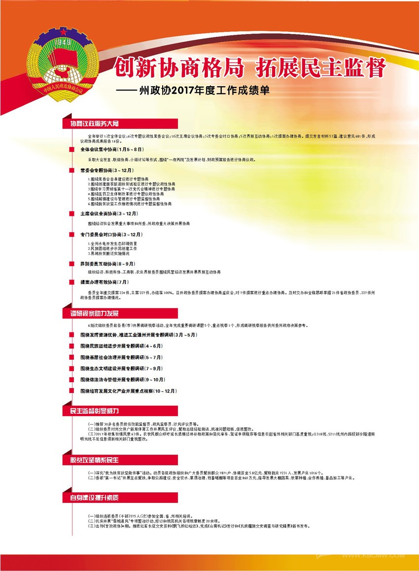 澤翁委員說,應(yīng)積極向省政協(xié)和省委統(tǒng)戰(zhàn)部爭取我州每個縣增加宗教界別委員的名額。增加鄉(xiāng)鎮(zhèn)委員聯(lián)絡(luò)站點服務(wù)人員的工作經(jīng)費,在鄉(xiāng)鎮(zhèn)爭取一名科級干部專職從事政協(xié)工作。