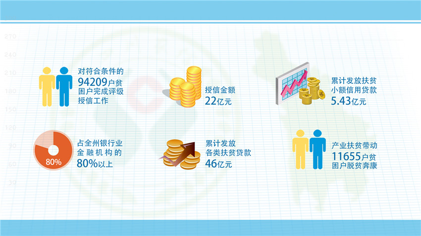 ——強化信貸扶持。緊緊圍繞全州脫貧退出總體目標(biāo),打破各縣劃分片區(qū)、劃分任務(wù)的局面,使脫貧攻堅工作從行政手段調(diào)整到市場競爭和民生工程兼顧,堅持“三個一百”——即百分百對符合條件的建檔立卡貧困戶進行評級授信,授信面達到100%;百分百滿足貧困戶有效信貸需求;百分百滿足產(chǎn)業(yè)帶動扶貧項目有效信貸需求,加強與18個縣黨委政府的溝通對接,瞄準(zhǔn)每個縣的地方特產(chǎn)產(chǎn)業(yè),因地制宜,為每個縣量身打造“一縣一策”的金融服務(wù)方案,累計發(fā)放各類產(chǎn)業(yè)、項目帶動扶貧貸款20.69億元。