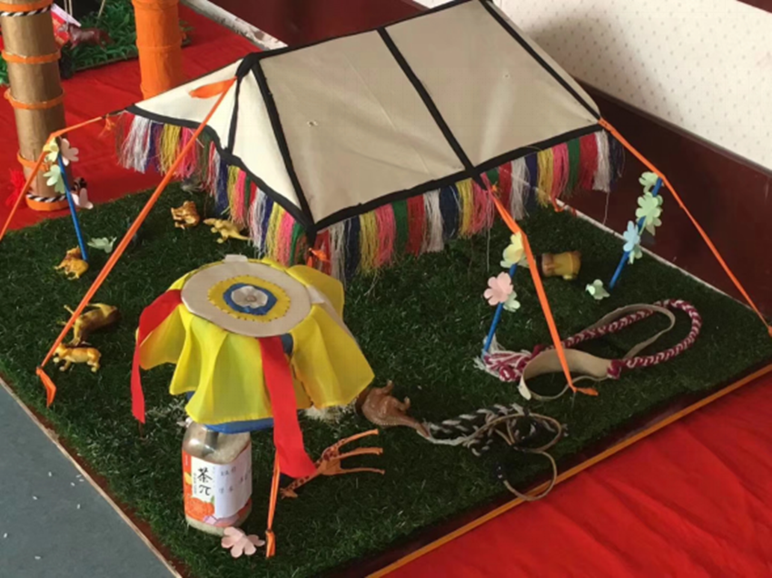 文藝匯演中,有充滿青春活力的現(xiàn)代舞《海草》、有熱情豪放的藏族舞蹈《真達(dá)鍋莊》《弦子》《打墻舞》、有別具一格的廢物回收“環(huán)保時裝秀”、有藏族山歌《牧女》,還有童趣濃郁的情景劇《小熊請客》《熊出沒之保護(hù)環(huán)境》等,小演員們惟妙惟肖的表演令人忍俊不禁,現(xiàn)場掌聲連連。少年宮作品展覽有各類藏漢書法、唐卡繪畫、剪紙以及黑帳篷、紡織機(jī)、藏式房子、藏戲面具等民族特色手工藝品,一件件精致的藝術(shù)作品,展現(xiàn)了孩子們的心靈手巧。